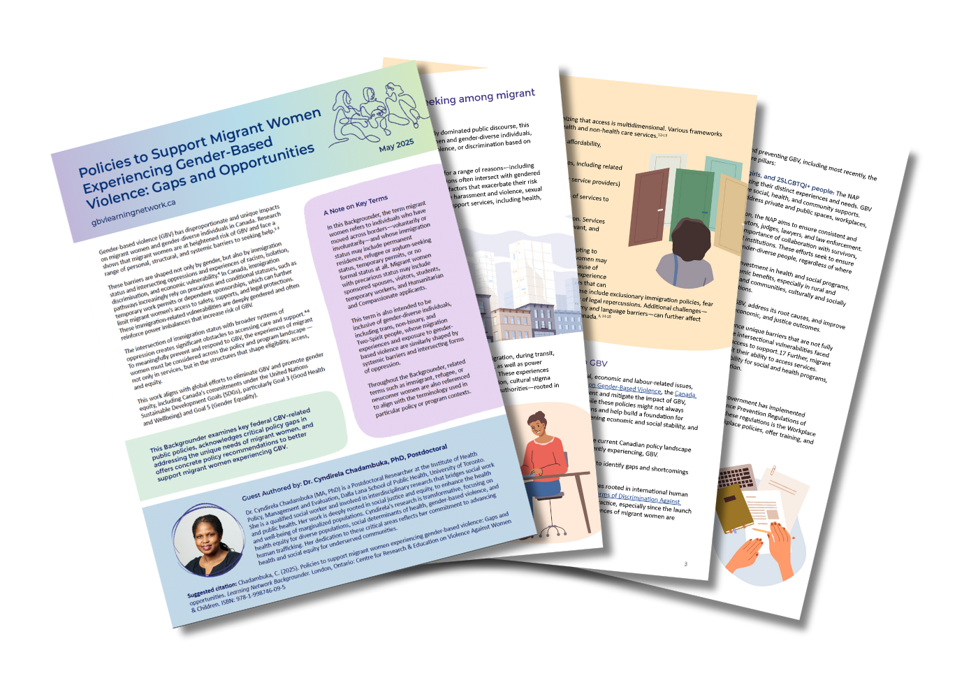 Suggested citation: Chadambuka, C. (2025). Policies to support migrant women experiencing gender-based violence: Gaps and opportunities. Learning Network Backgrounder. London, Ontario: Centre for Research & Education on Violence Against Women & Children. ISBN: 978-1-998746-09-5