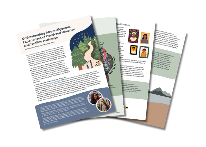 In this Backgrounder, the authors draw on findings and experiences from the Proclaiming Our Roots (POR) project, a national arts- and community-based research project that spans Northern Turtle Island (the colonial settler nation state known as Canada). The POR project explores the erasure of Afro-Indigenous Peoples presence, histories, and realities in the Canadian nation-state. This Backgrounder, however, will focus on a subset of findings to unpack the way community members in the POR project understand gendered violence in their communities. The authors employ the historic and contemporary contexts that contribute to gendered violence in Afro-Indigenous communities, while exploring how different forms of oppression intersect and exacerbate experiences of gendered violence and trauma. Lastly, they openly discuss mental health and trauma within Afro-Indigenous communities to help destigmatize such topics and share ways to promote healing, including storytelling.