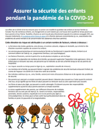 Ce document d’information aborde d’importantes considérations et stratégies pour assurer la sécurité d’enfants susceptibles d’être plus exposés à différentes formes de maltraitance pendant la pandémie de COVID-19.