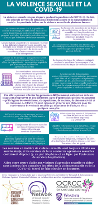 Ce document infographique expose plusieurs effets de la pandémie de COVID-19 dans le domaine de la violence sexuelle.