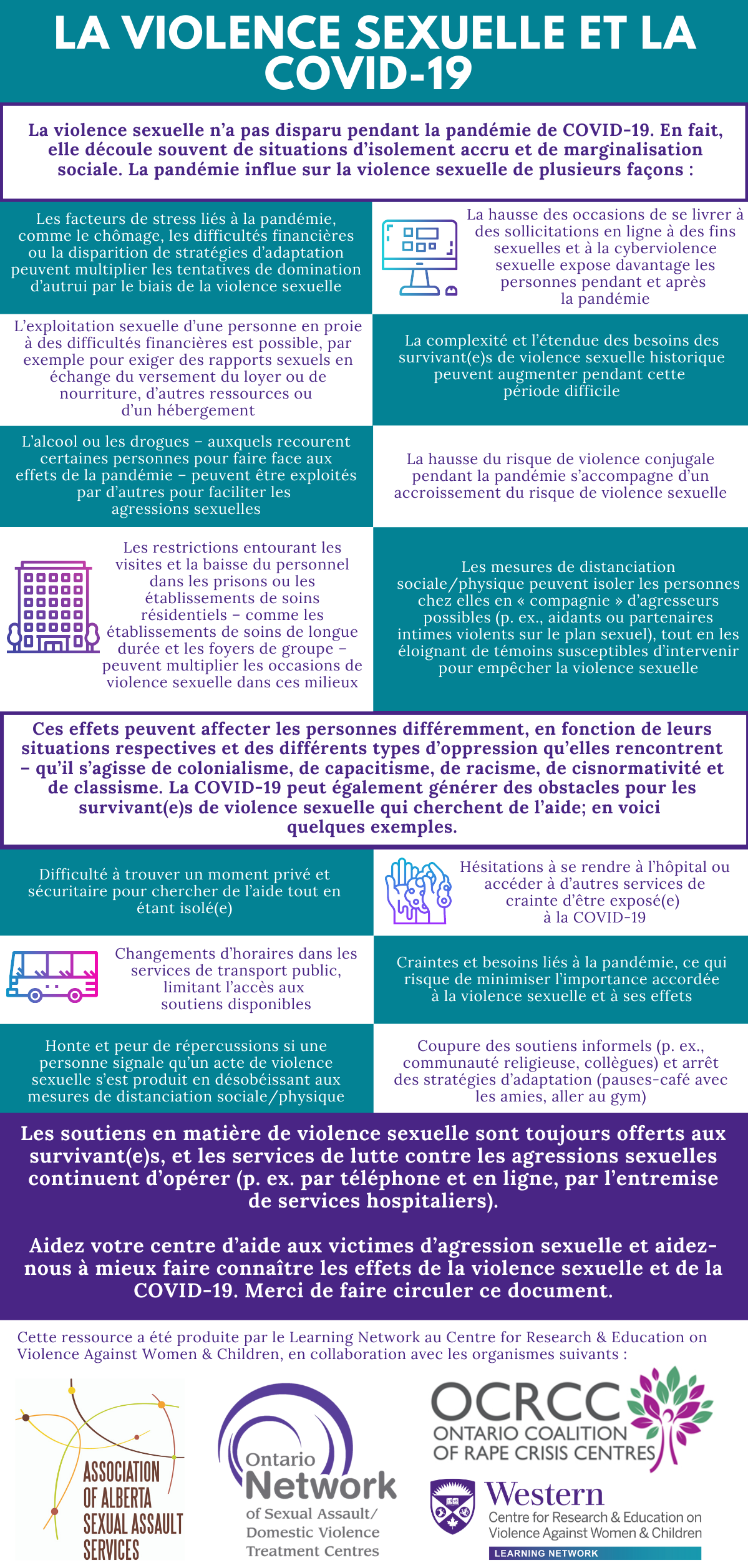 Aidez votre centre d’aide aux victimes d’agression sexuelle et aidez-nous à mieux faire connaître les effets de la violence sexuelle et de la COVID-19. Merci de faire circuler ce document.