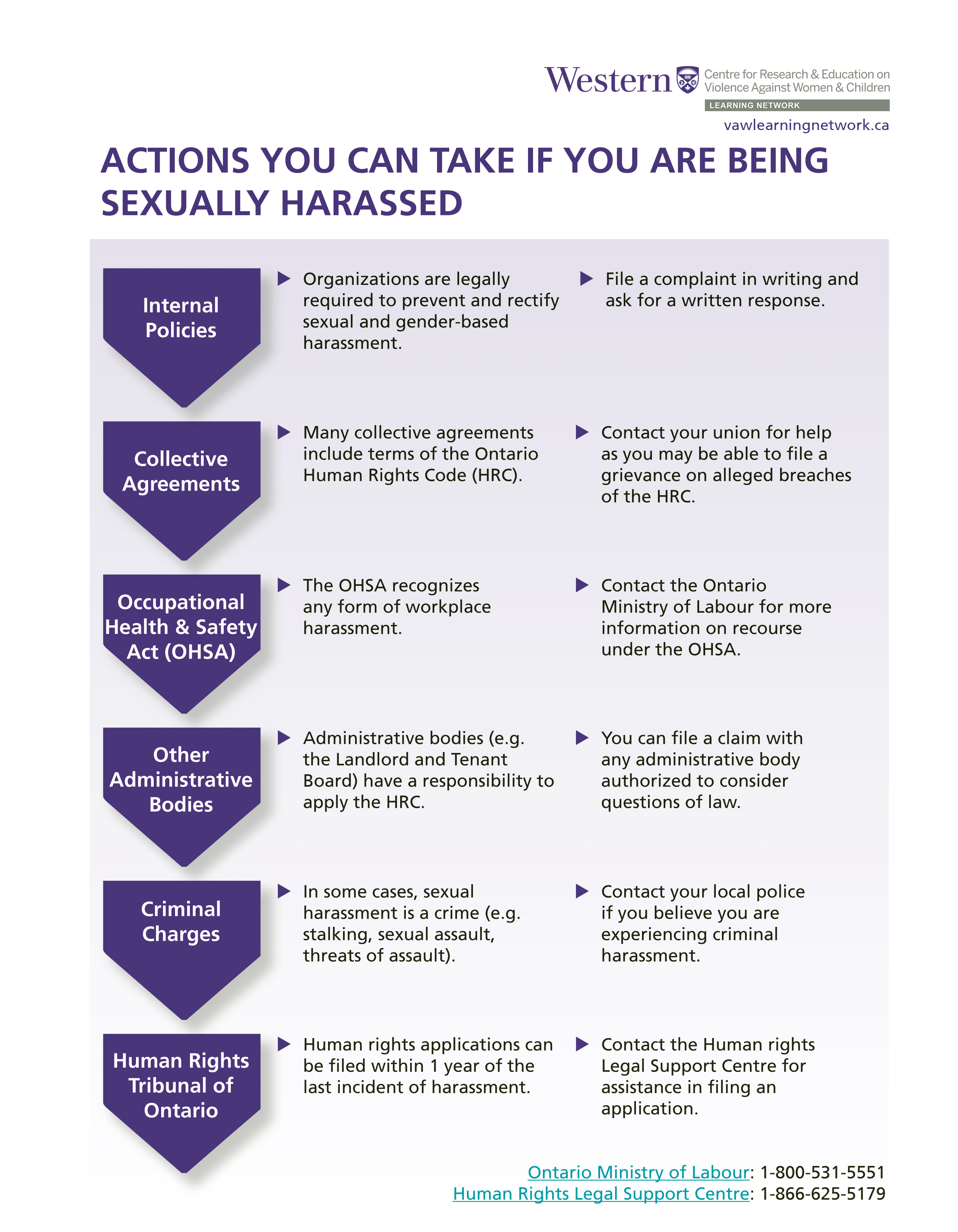 This infographic provides information on actions that victims of sexual harassment can take in receiving support for sexual and gender-based harassment.