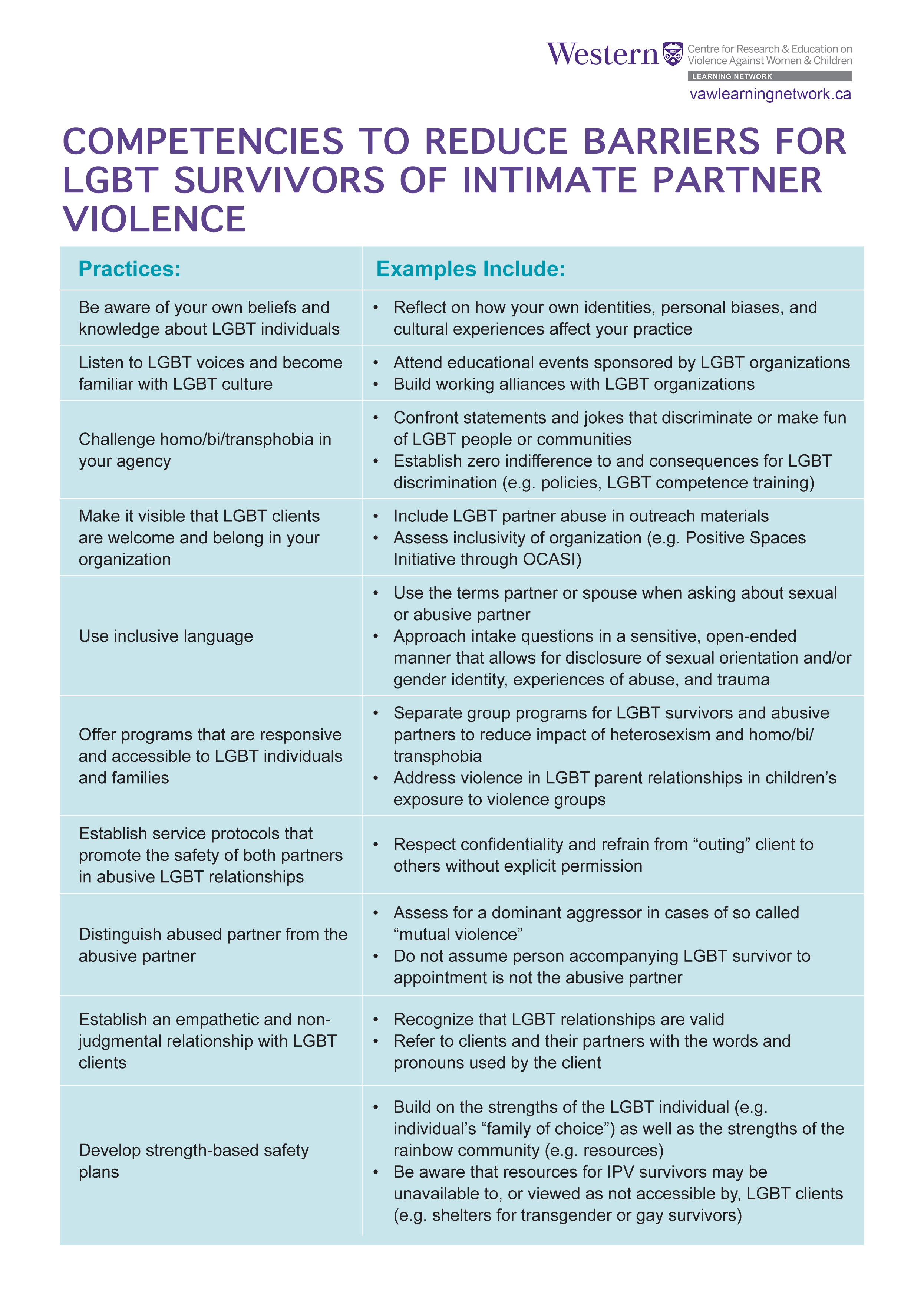 Competencies to Reduce Barriers for LGBT Survivors of Intimate Partner Violence