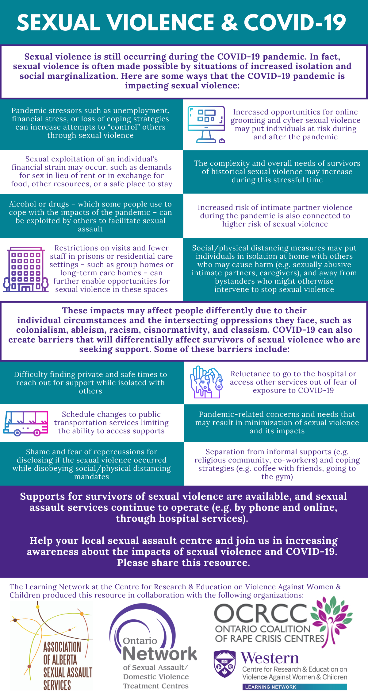 Help your local sexual assault centre and join us in increasing awareness about the impacts of sexual violence and COVID-19. Please share this resource.
