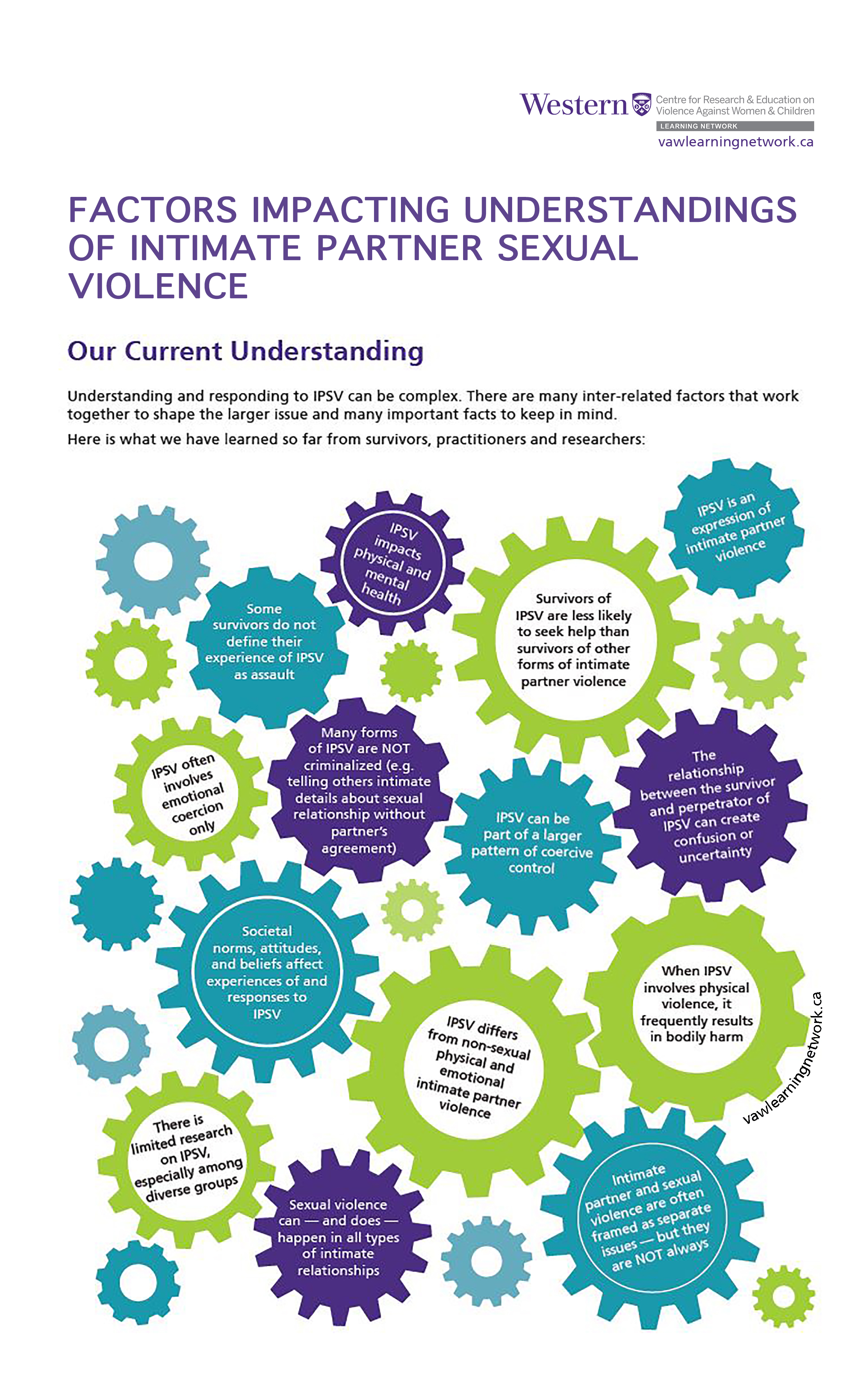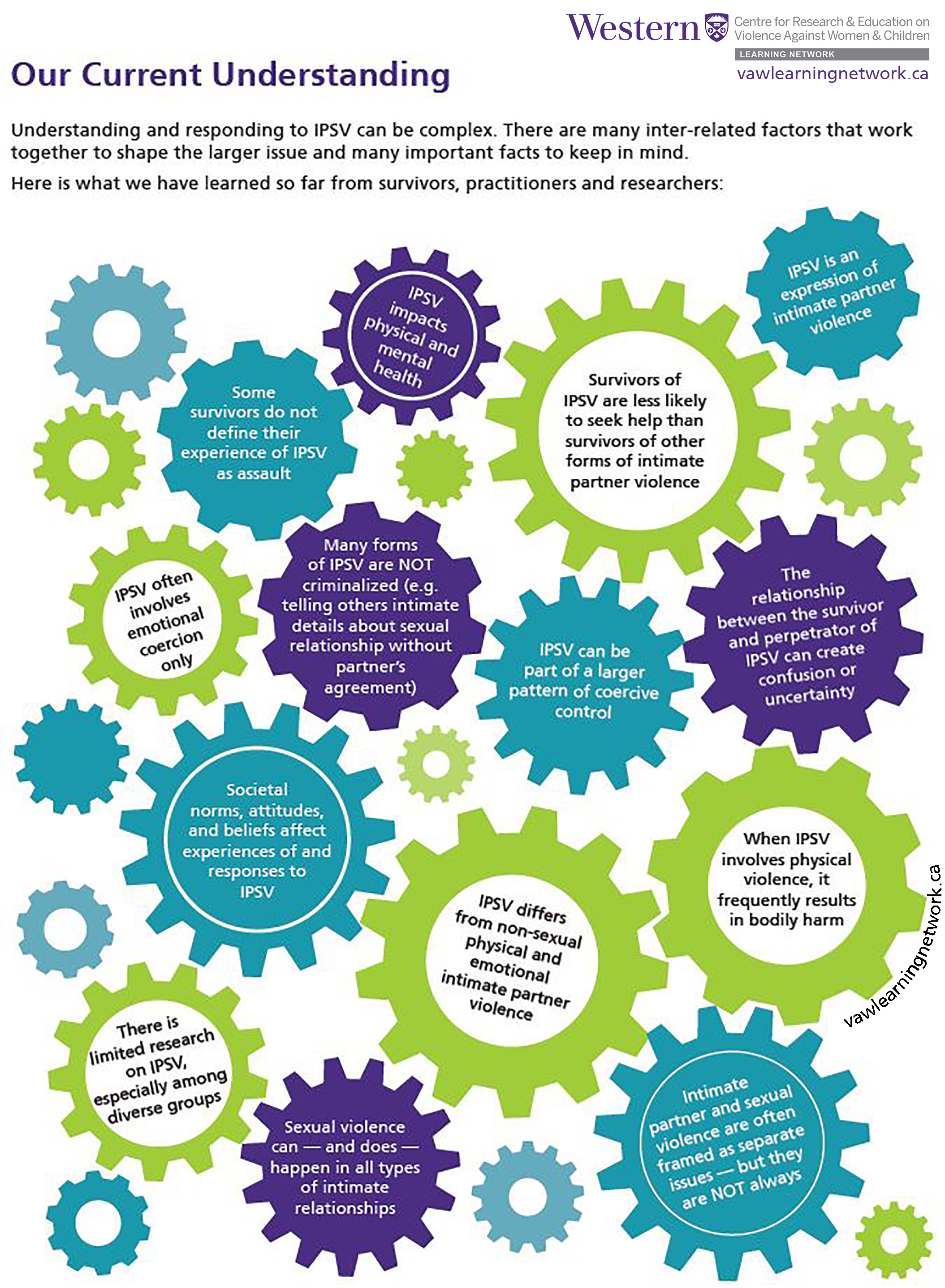 Understanding and responding to IPSV can be complex. There are many inter-related factors that work together to shape the larger issue and many important facts to keep in mind. Here is what we have learned so far from survivors, practitioners and researchers: