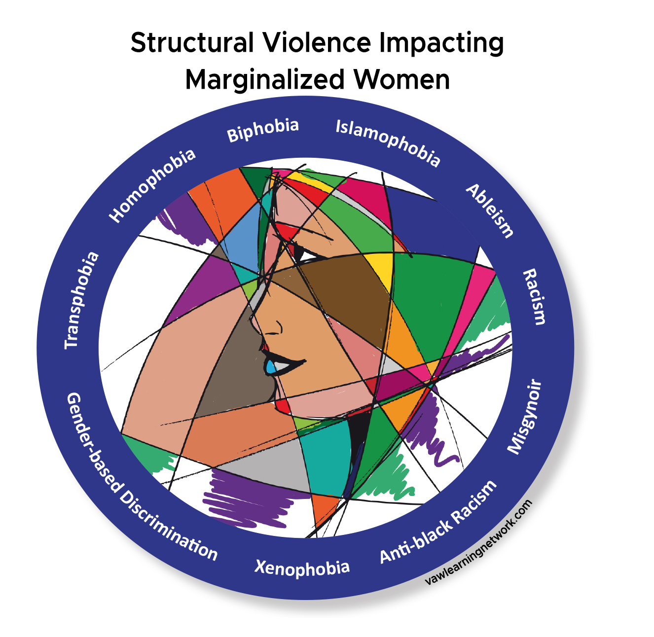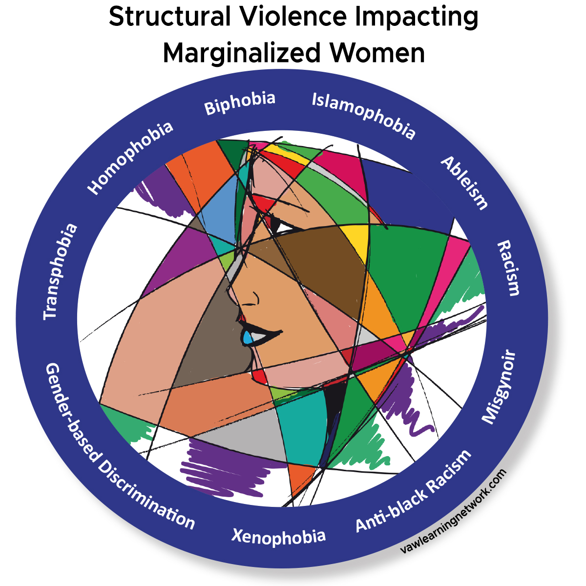 This infograpic lists some of the forms of structural violence that often compound the experiences of marginalized women.