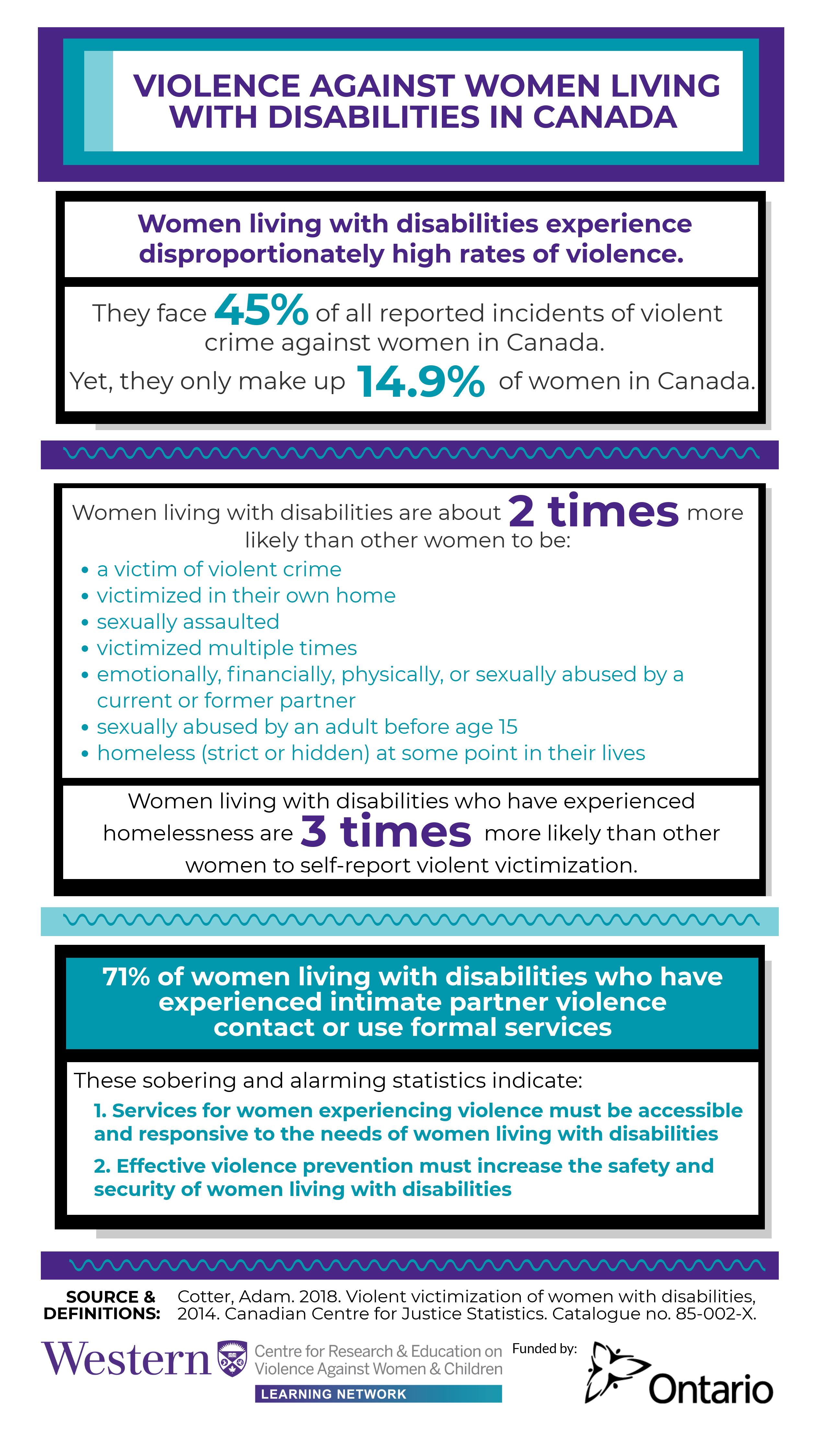 Source & Definitions: Cotter, Adam. 2018. Violent victimization of women with disabilities, 2014. Canadian Centre for Justice Statistics. Catalogue no. 85-002-X.