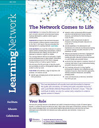 The Learning Network will function primarily in English and we will explore ways to share research, information and promising practices with the French Language Training Institute on Violence Against Women.