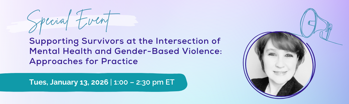 In this Special Event, Eva Zachary, Executive Director of Muskoka Victim Services, will explore the realities, pressures, and possibilities at the intersection of mental health and gender-based violence. Drawing on practice experience, provincial case review insights, and cross-sector crisis response, Eva will highlight practical, trauma- and violence-informed strategies for reducing stigma, responding to mental health concerns, and supporting survivor safety, autonomy, and dignity — even within system-level constraints.